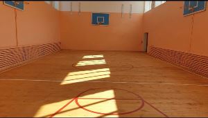 Отопительные приборы утоплены в стену и закрыты решетками для создания безопасности. Имеется план эвакуации из спортивного зала в случае возникновения пожара, два огнетушителя и оборудование запасного выхода из зала легкооткрывающимся запором. Состояние спортивных снарядов и оборудования в норме. Пол спортивного зала является упругим, без щелей и застругов, имеет ровную, горизонтальную и нескользкую поверхность, окрашенную эмульсионной краской.